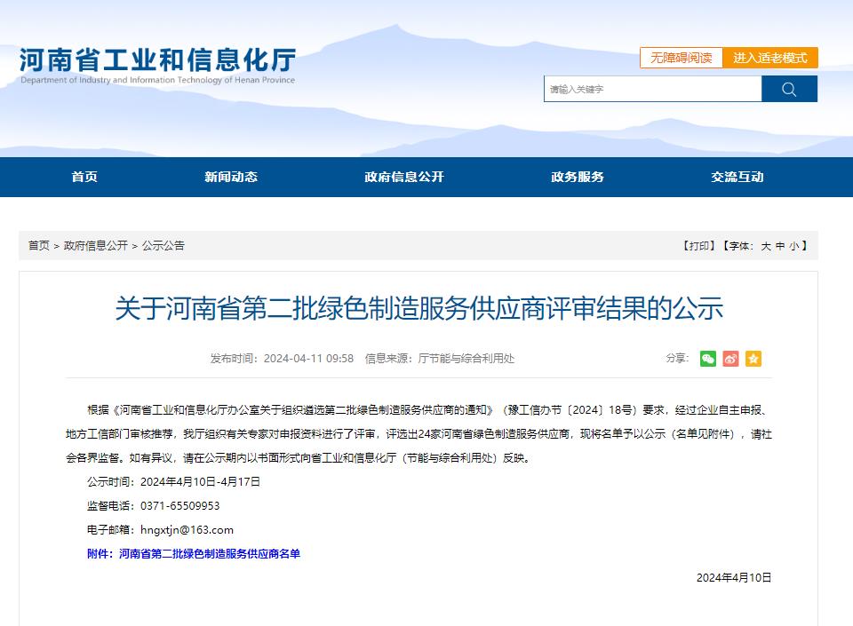 近日,河南省工信廳公示河南省第二批綠色制造服務(wù)供應(yīng)商名單,河南銀金達(dá)新材料股份有限公司在列。