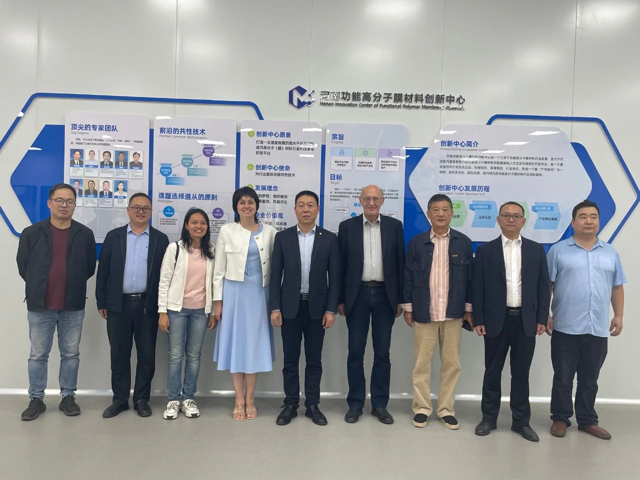 10月11日,白俄羅斯國家科學院院士、物理有機化學研究所所長彼得科維奇·亞歷山大、膜材料與技術實驗室主任普利斯科·塔提亞娜、河南省政府參事趙亮研究員、河南省科學院化學研究所田振邦副所長、河南師范大學張小轉副研究員等一行蒞臨銀金達集團參觀調研,河南銀金達新材料股份有限公司副總經理夏根南,河南功能高分子膜材料創新中心有限公司總經理沙連峰、副總經理楊武濤等人員進行了熱情的接待。