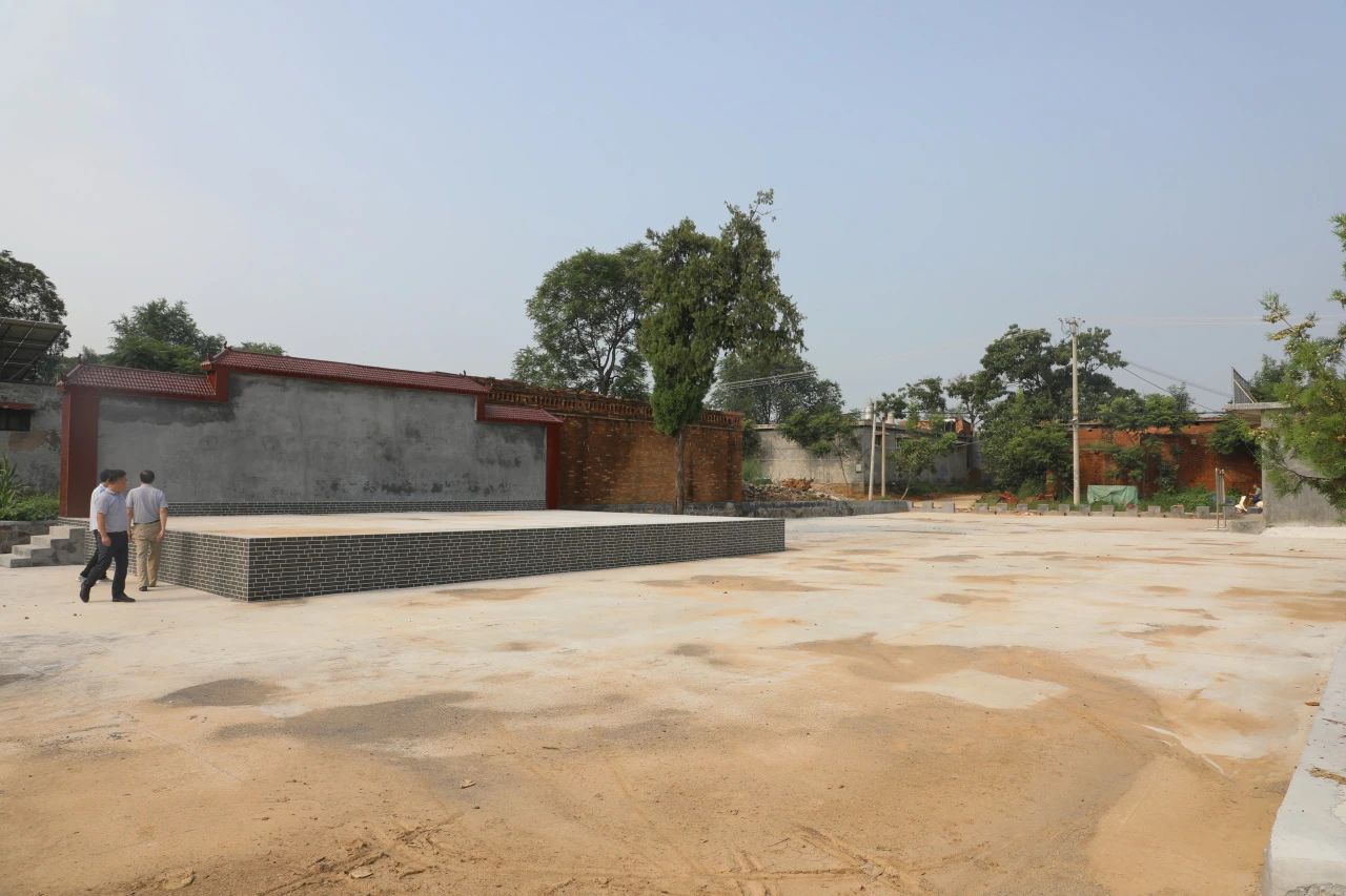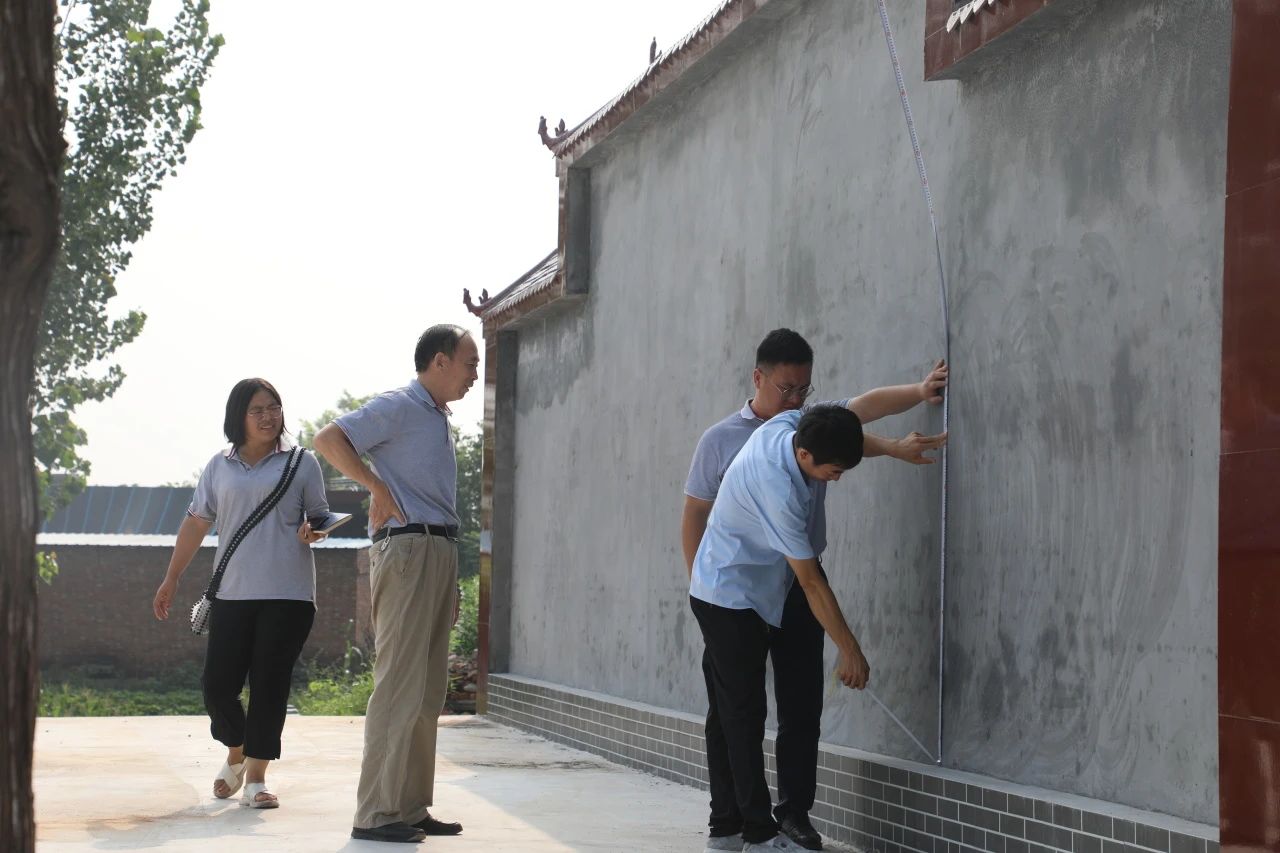 在王二莊村文化墻和文化活動廣場,楊鳳瑞一行仔細查看了項目建設情況,已建成文化廣場面積662平方米,文化墻立體面積45平方米,楊鳳瑞對項目建設質量表示滿意,并對兩個場地的后續建設方案進行討論,經現場測量,確定了文化墻和廣場背景墻的宣傳設計規劃。